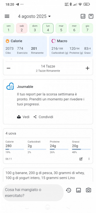 Dopo una attenta ricerca ho adottato l’utilizzo della App Journable per il monitoraggio del piano nutrizionale e di esercizio, con una convenzione con gli sviluppatori negli Stati Uniti !